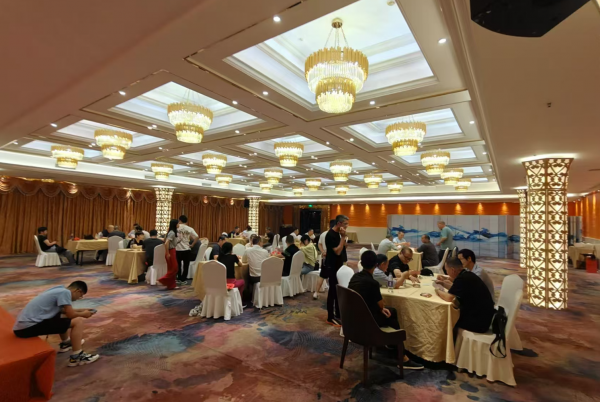 晚上回到入住飯店,公司工會組織開展了一場摜蛋比賽,這次比賽有28位選手共14組參賽,比賽時,選手們全神貫注,出牌果斷,圍觀的同事們也時而緊張時而歡笑,現場氣氛熱烈非凡。最終第4組、第7組和第14組分別獲得*、亞軍和季軍。